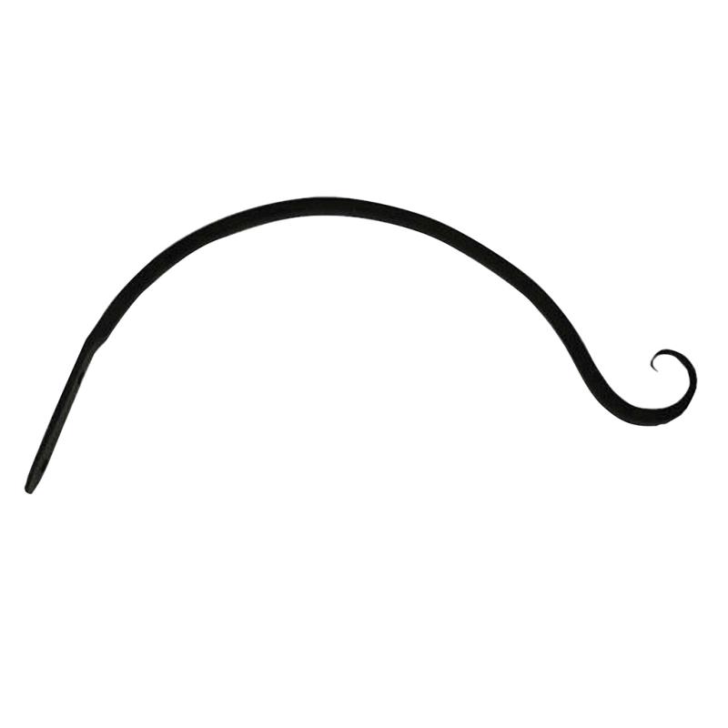 Half circle curved hanger featuring upturned hooks. Hand-crafted wrought iron construction. Available in 9" L-12 pack, 12" L-12 pack, 18" L-12 pack, and 24" L-6 pack. Black.
