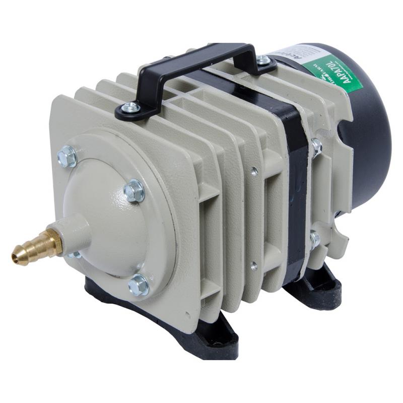 Description: Perfect to run several Waterfarms or multiple air stones at once. Electrical magnetic air compressor in a high quality aluminum alloy case. Wear and tear resistant material for cylinder and piston. High pressure and high output. Comes with multi-outlet divider.(6, 8, and 12) that can be individually opened or shut. 60w. 70 lpm. Pressure >0.03 Mpa