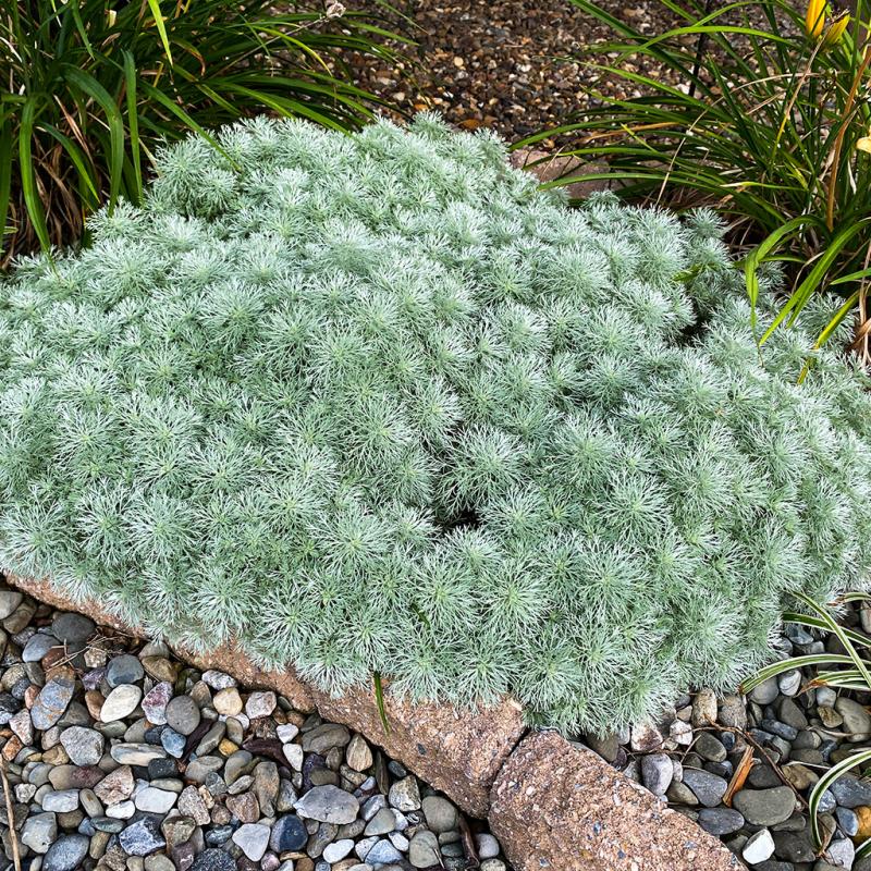 | Aptly named, Silver Mound has soft, feathery foliage and forms a compact, silky, cushion-like mound. It has many applications in the garden, including edging, rock gardens, pots, and filling plants for hot, dry areas. It has long been one of the most popular silver foliage plants. |