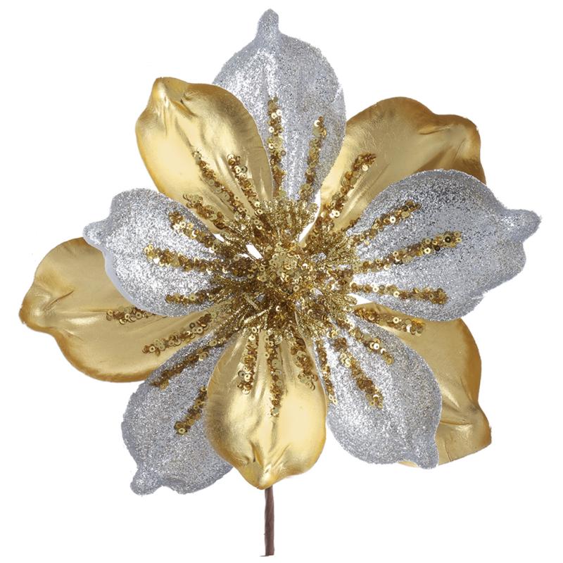 Silk Flowers Blue Gold Sapphire Jewel Pointsettia Regency International