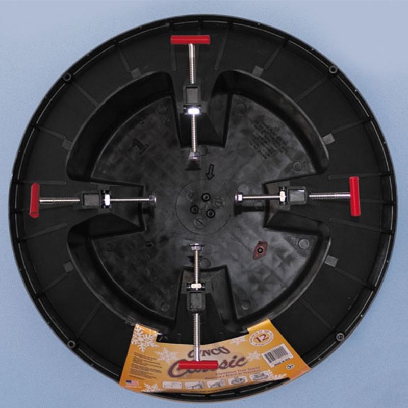 | The C-144 is the largest of the line to date. It is designed to hold trees up to 12' tall (larger if attached to plywood using reinforced holes at outer edges of stand). The low-wide reservoir accommodates low branches, spill guard prevents over-filling mishaps. 6.8 pounds of virgin, high-impact polypropylene make up the stand body to assure durability and reliability. Steel spikes in center of reservoir anchor tree, preventing shifting, and making set-up a snap. |