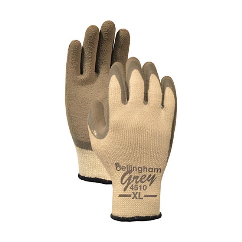 Description: Bellingham Grey gloves classic insulated work provide comfort and protection for cool weather work. Thicker, 10 gauge napped liner adds cushion and warmth. Textured, gray rubber coating for great grip, wet or dry. Machine washable. Gray and white.