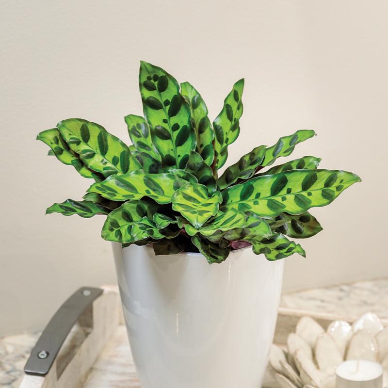 | Commonly known as Rattlesnake plant, Calathea lancifolia is a prayer plant, the common name for plants that tend to fold their foliage as night falls. Prayer plants include plants in the following genera: Calathea, Maranta, Stromanthe, and Ctenanthe. Calathea are grown for their beautifully ornamental leaves. The long slender leaves have wavy edges, and have a lime green base with deep green oval markings on the top surface, with burgundy undersides. Calathea lancifolia has been reclassified as Goeppertia insignis. | |