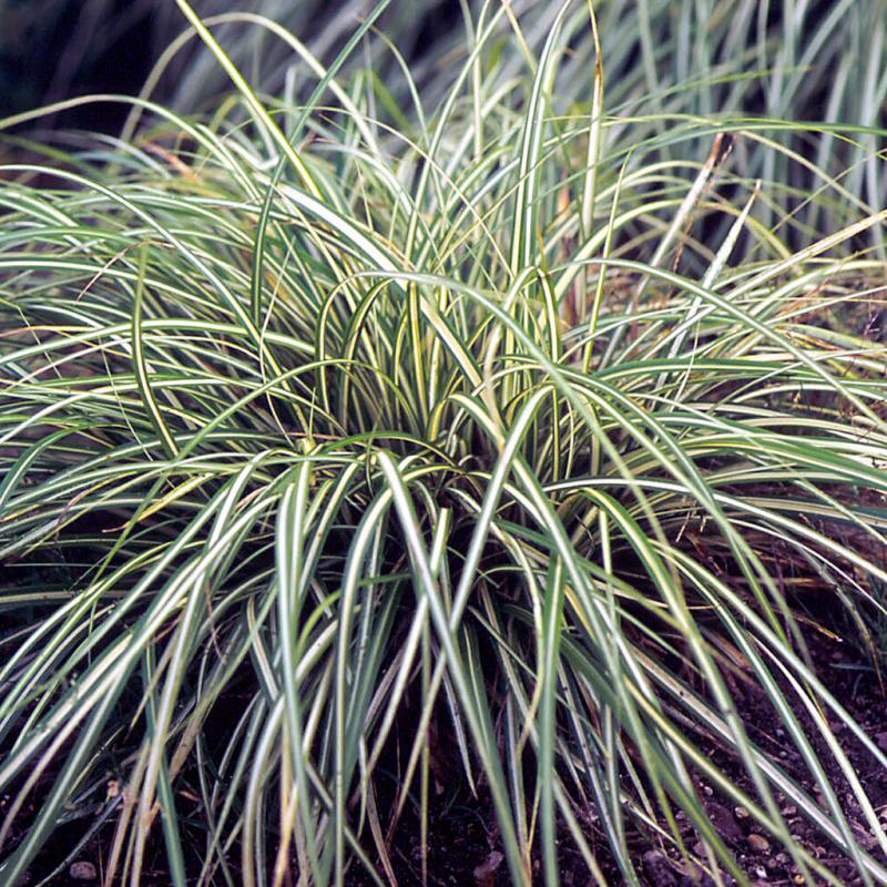 | One of the most popular variegated sedges, this selection has creamy yellow leaves with dark green edges. They cascade softly to the ground in a fountain-like manner. Unlike many other sedges, this one prefers dry to average soil moisture. This versatile sedge is beautiful as a spiller in containers, rock gardens, and landscapes. |