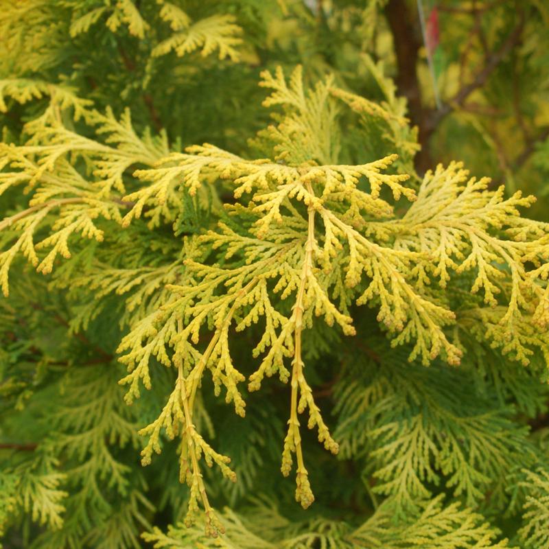 | If you're seeking an evergreen with a real presence, look no further than this selection with so much personality that it's hard to ignore. This golden, upright, pyramidal large shrub to small tree-sized plant is a vigorous grower sending out graceful horizontal branches of spreading, fan-like fronds. 'Crippsii's' coloration will make you look twice with fan-like fine-textured sprays tipped with brilliant yellow, gradually becoming gold, then bright chartreuse as you progress from outside to in on the plant. 'Crippsii' holds its color well in winter and thrives in sun or light shade, although full sun is best to maximize its outstanding yellow coloring. |