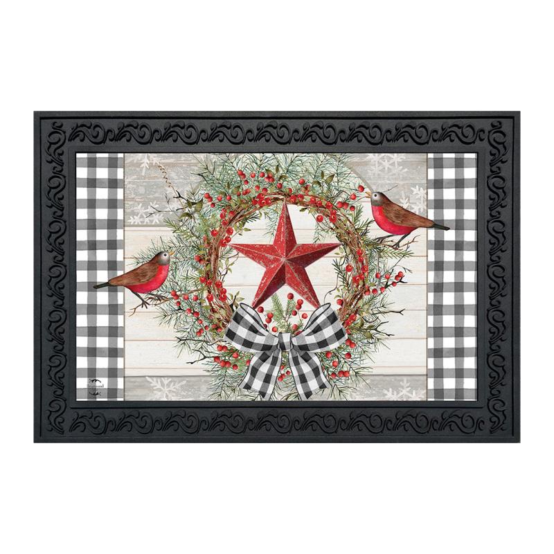 | The Berry Wreath Barnstar Winter Doormat measures approximately 18" x 30" and is made to fit the Briarwood Lane Rubber Mat Tray. Add a colorful, welcoming touch of the season to your home and garden with a doormat from Briarwood Lane. Their original artwork is printed on polyester material with a non-slip rubber backing. The mat tray is sold separately. |
