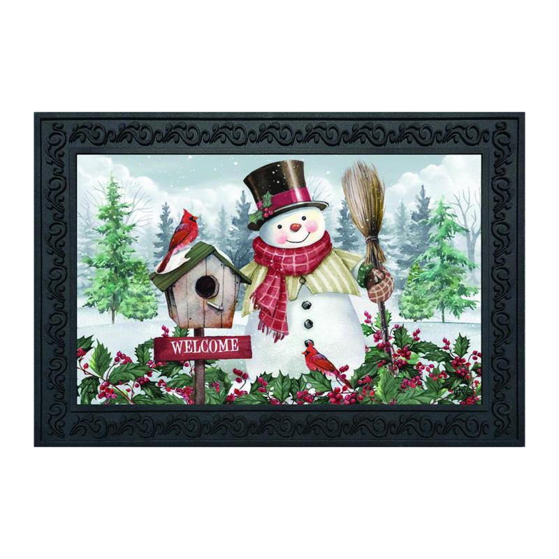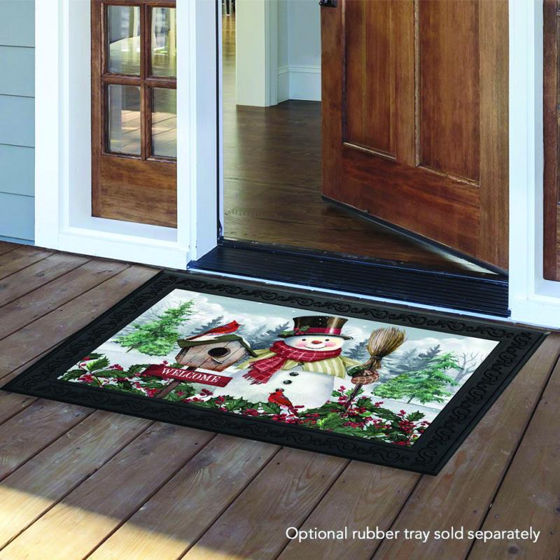 Description: The Jolly Snowman Welcome Doormat measures 30" x 18" and is made to fit the Briarwood Lane Rubber Mat Tray. Add a colorful, welcoming touch of the season to your home and garden with a doormat from Briarwood Lane. Their original artwork is printed on polyester material with a non-slip rubber backing. The mat tray is sold separately.