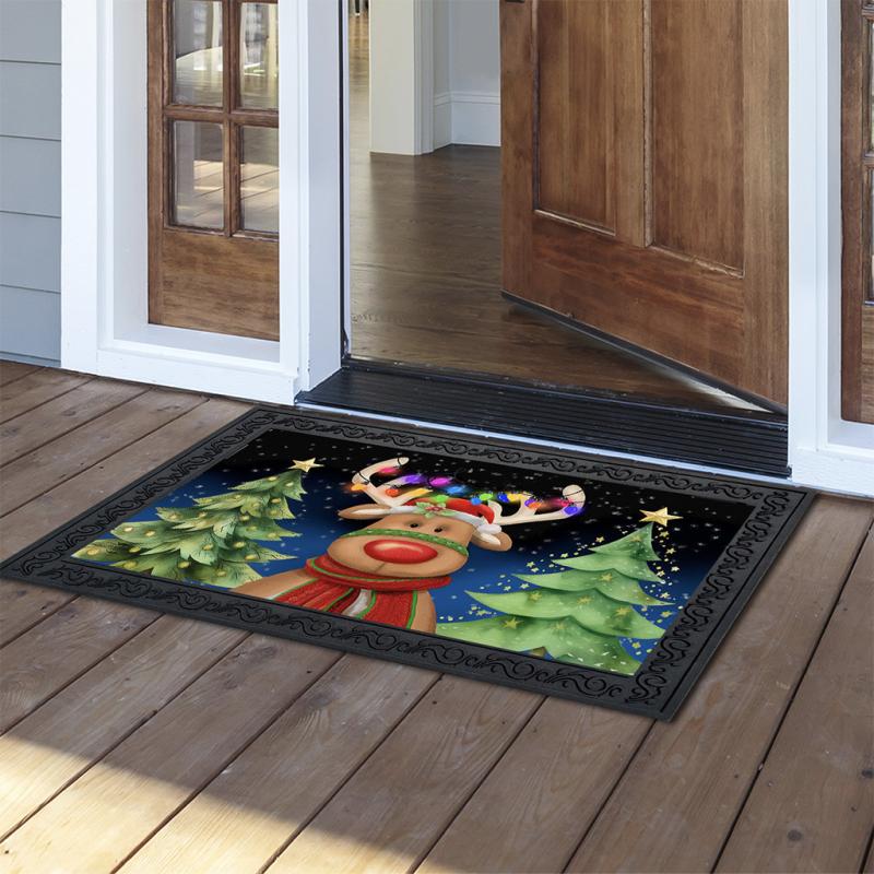 | The Festive Reindeer Doormat measures 30" x 18" and is made to fit the Briarwood Lane Rubber Mat Tray. Add a colorful, welcoming touch of the season to your home and garden with a doormat from Briarwood Lane. Their original artwork is printed on polyester material with a non-slip rubber backing. The mat tray is sold separately. |