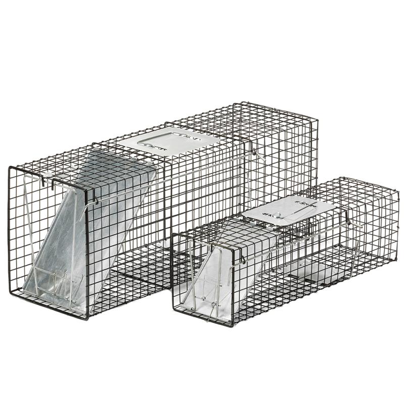 | Live trap combo pack, two traps in one! / LT4 and LT2 live trap pack. / LT4 is ideal for raccoons, porcupines, turtles, foxes, and other similar-sized animals. / LT2 is ideal for squirrels, chipmunks, rabbits, muskrats, mink, and other similar-sized animals. |