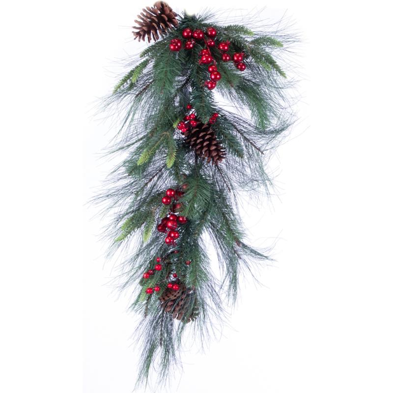 Swag Mixed Pine Swag w/Cones, Berries and Plaid Bow