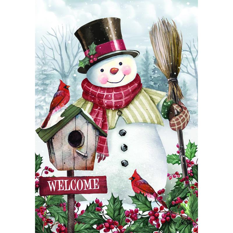 Description: The Jolly Snowman Welcome Garden Flag measures 18" x 12.5". Add a colorful, welcoming touch of the season to your home and garden with a premium decorative flag from Briarwood Lane. Their original artwork, printed on polyester material, is designed for outdoor display and provides unique designs that are as durable as they are beautiful! The text is correctly readable on one side. Flag stands are sold separately.