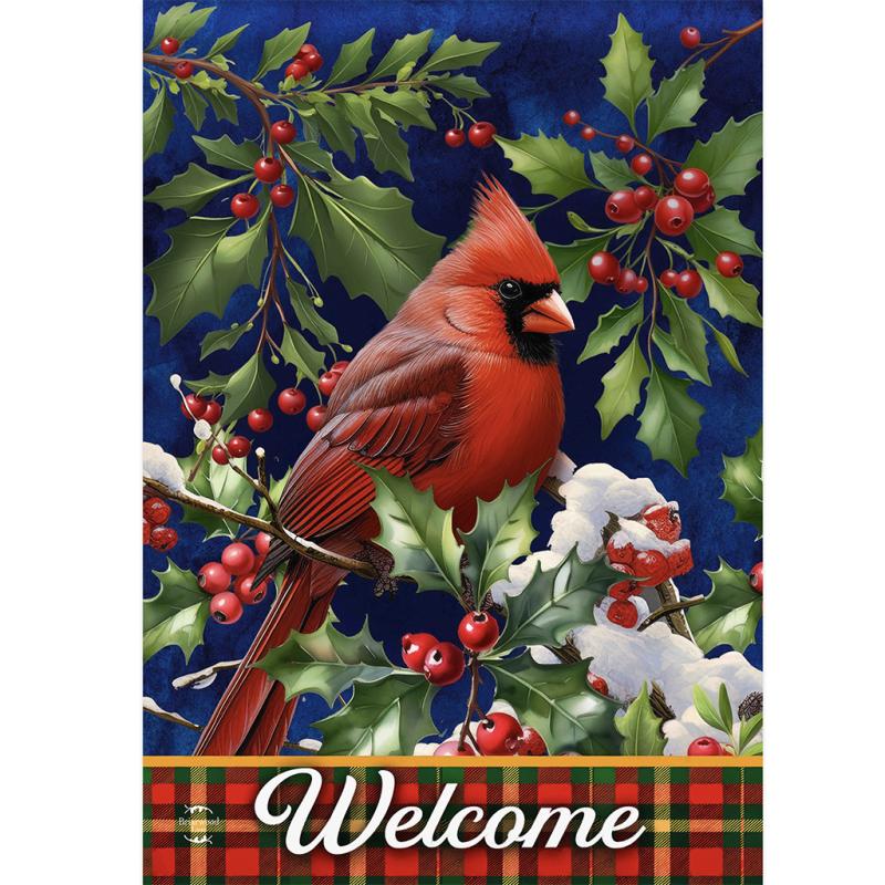 Description: The Cardinal and Holly Welcome Garden Flag measures 18" x 12.5". Add a colorful, welcoming touch of the season to your home and garden with a premium decorative flag from Briarwood Lane. Their original artwork, printed on polyester material, is designed for outdoor display and provides unique designs that are as durable as they are beautiful! The text is correctly readable on one side. Flag stands are sold separately.