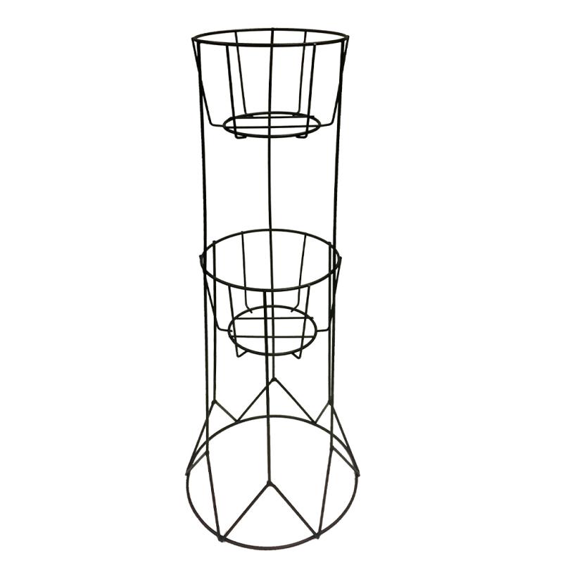 Description: This stand is configured for 3 small flower pots in individual rings or 1 large flower pot up to 12" diameter, which makes it ideal for an in-house herb garden or a variety of plants. Very sturdy. Made of heavy gauge wire with powder coat finish. Form-fitted heavy duty plastic tray included. (13" H)