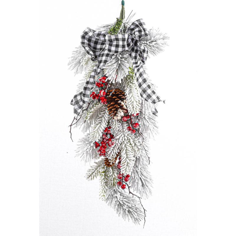 Teardrop Teardrop Snowy Pine Berries with Plaid Bow
