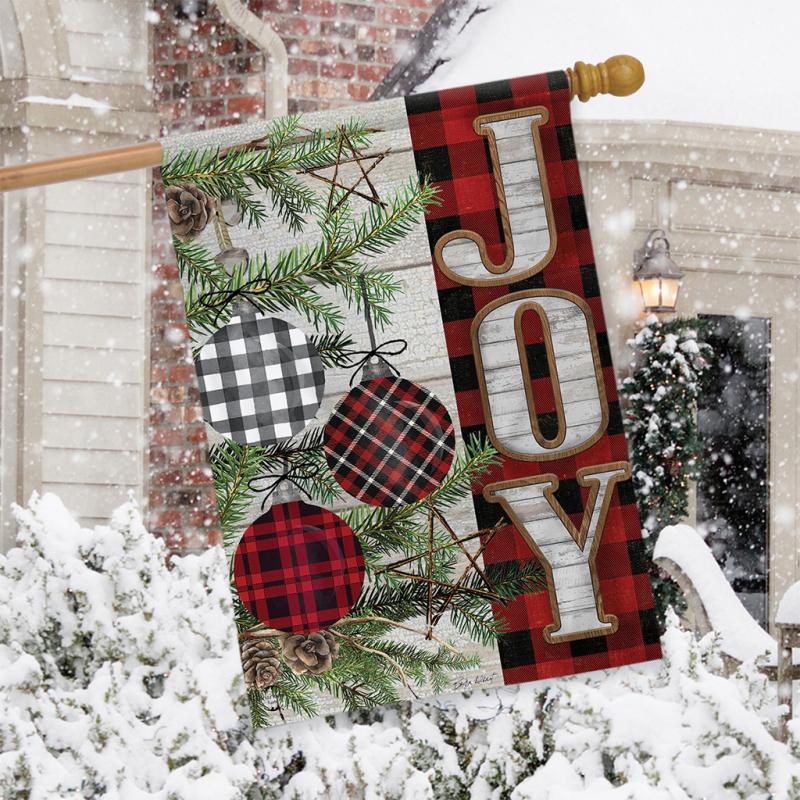 | The Patterned Ornaments Christmas Double-Sided House Flag measures 28" x 40". Add a colorful, welcoming touch of the season to your home and garden with a premium decorative flag from Briarwood Lane. Their original artwork printed on polyester material designed for outdoor display provides unique designs that are as durable as they are beautiful! The text reads correctly on one side. The flag poles are sold separately. |