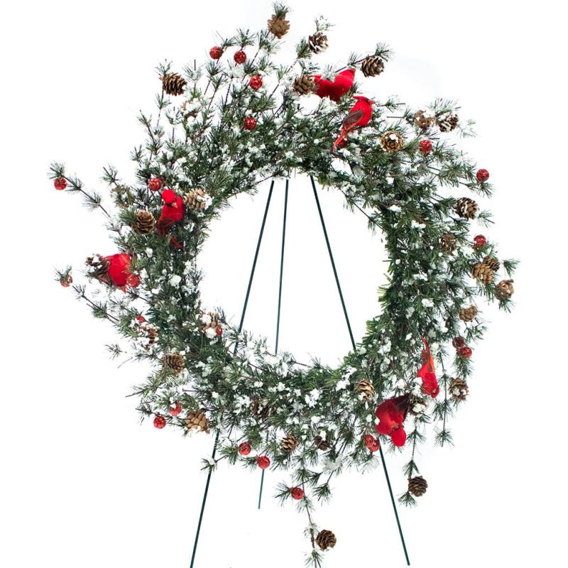 Ormans Frosted Mixed Pine Wreath White Tip Cones Red