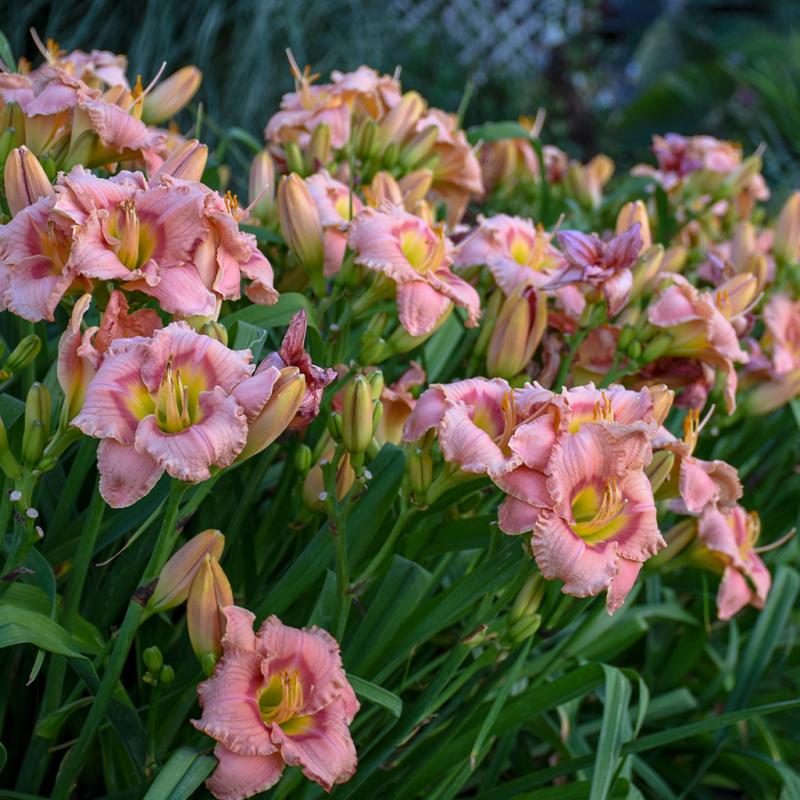 | 4¼", medium pink flowers with a triangular red eye and a green throat Blossoms are round in form and heavily ruffled The flower color is sunfast Strong, well-branched, and budded scapes Notably fragrant Healthy, deep green foliage |