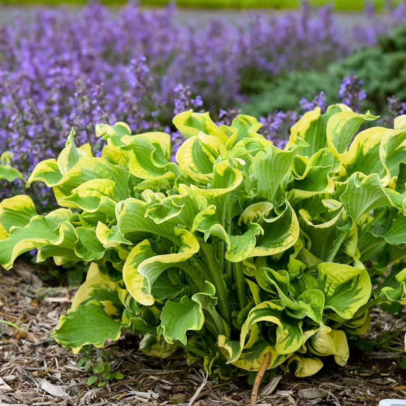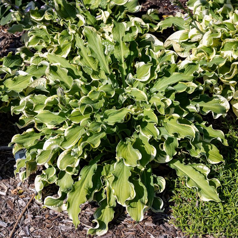 Description: 2021 Proven Winners National Hosta of the Year® Extremely ruffled, cream-colored margins extend from the tip of each green leaf all the way down the petiole to the crown. This ruffled margin is evident even in the juvenile stage of the plant before vernalization. The leaves of this medium-sized hosta are of excellent substance, making them slug-resistant in the landscape. Light lavender flowers appear atop purple scapes in midsummer. Hostas are exceedingly popular perennials in today's gardens due to their versatility in the landscape. Their subtle colors, tall flower scapes, and broad, coarse leaves fill a niche in garden designs that few other plants can achieve. Their large leaves provide excellent coverage for dying bulb foliage. Hostas also grow well in city environments where the air may be polluted by car exhaust, etc.