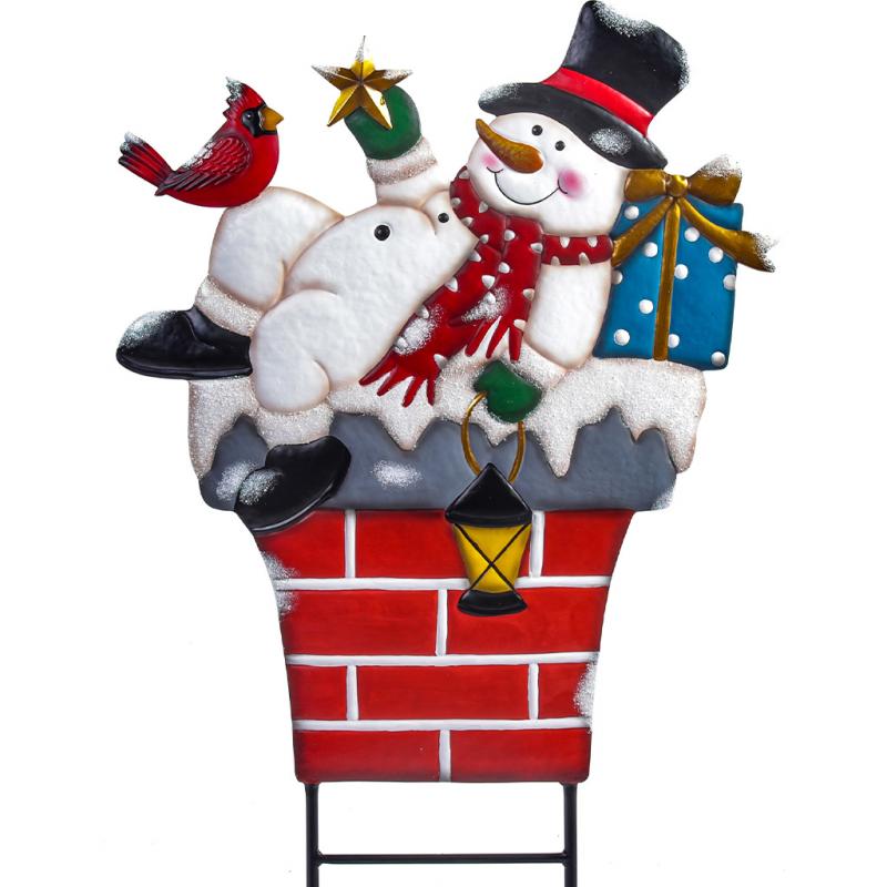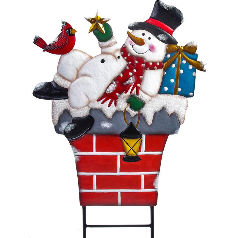 Metal Stake Snowmen With Tree