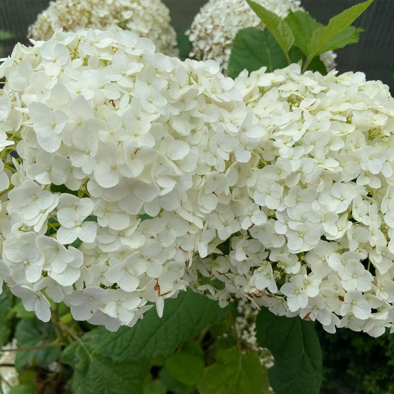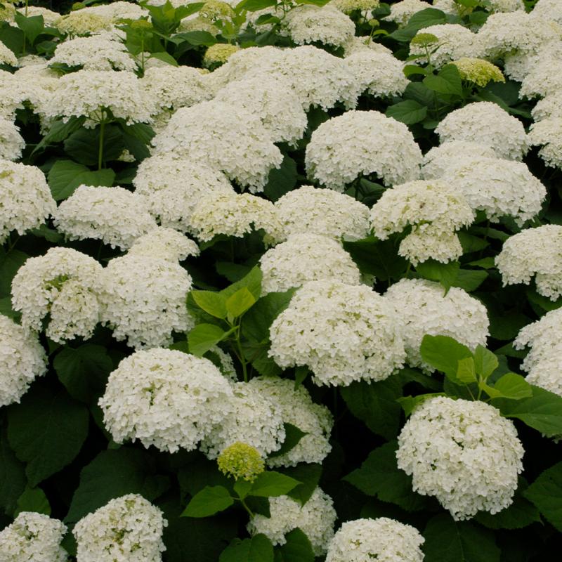 | Improved selection of Hydrangea arborescens 'Grandiflora'. White flower heads are more erect than 'Grandiflora'. Thrives in shade. Flowers may be small in the first year but are standard size by the second year. 2001 PA Gold Medal Award Winner. Rarely to never fed on by Japanese beetles. |