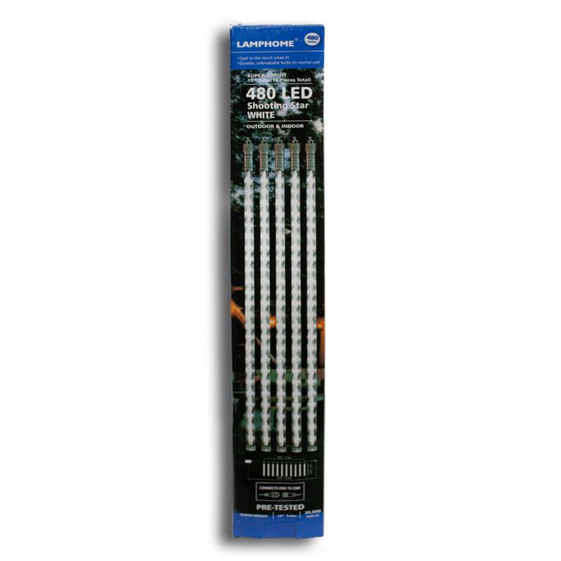 | This lamp, a Home Shooting Star Set, has 480 multi-color LED lights in a 10-piece shooting star set with transparent wire and end connectors. The total length is 22 feet, with 12 feet of lighted length. Each shooting star is made of 19-inch tubes. Two sets can be connected at one time and used indoors or outdoors. |