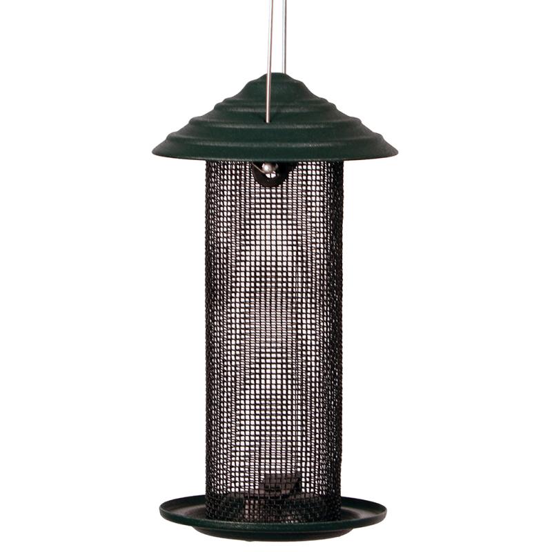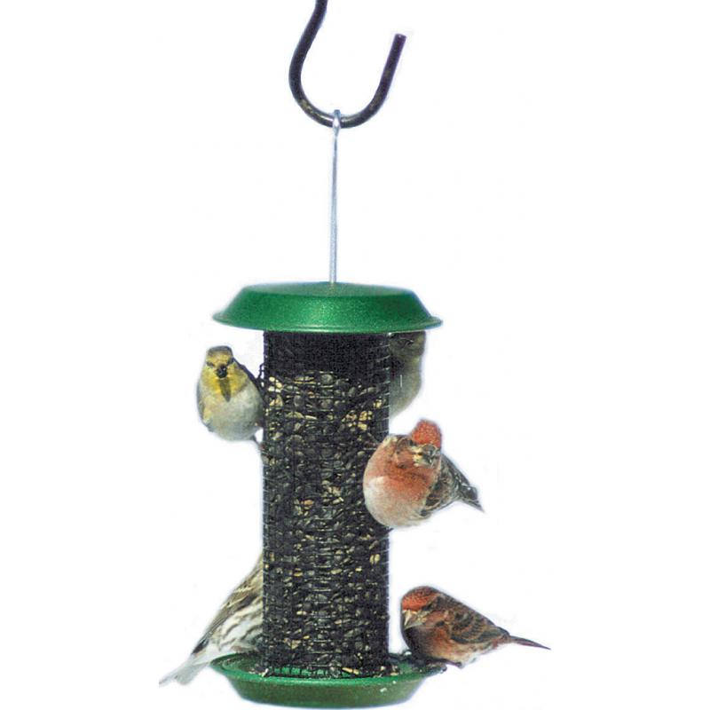 The Thistle Seed Feeder is an all steel green mini magnum thistle seed feeder. Holds 1 pint of thistle seed. 4.75" dia. x 11.75" H.