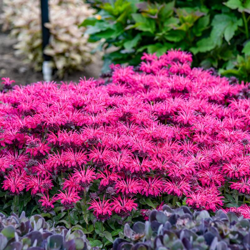 Description: Bee Balm typically blooms in midsummer, but 'Leading Lady Razzberry' leads the way in early summer, flowering earlier and forming a more petite clump than other Bee Balm. This variety typically blooms from early summer (the first week of June in Michigan) into midsummer and grows just a foot tall. 'Leading Lady Razzberry' produces bright raspberry purple flowers on dark green leaves with a purple cast and dark bracts. 'Leading Lady Razzberry' is well-behaved in the garden; It stays where you plant it and doesn't run around. The blossoms' sweet nectar is highly attractive to butterflies, hummingbirds, and honeybees, and the aromatic foliage is naturally deer-resistant.