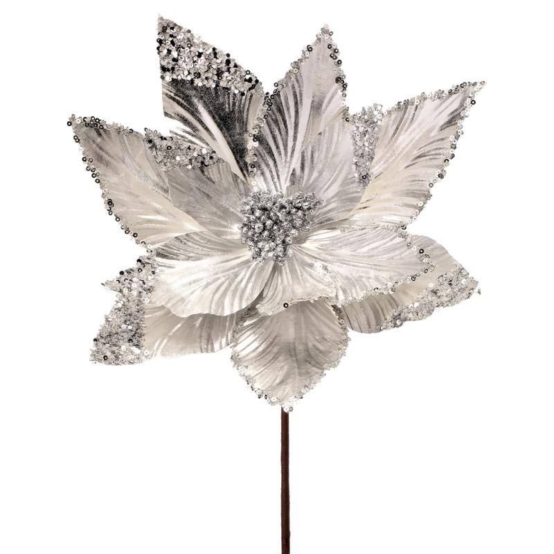 Regency Silk Flowers Silver Metallic Sequin Edge/Tip Poinsettia
