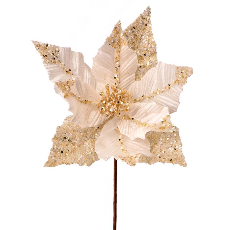 Silk Flowers Ivory Gold Sequin Stripe Poinsettia