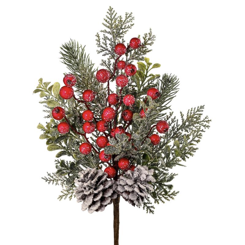 Pick Red Green Frosted Mix Green Berry Cone Pick Regency International