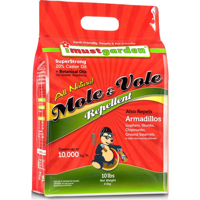 | I Must Garden Mole & Vole Repellent has a super strong formula containing 20% castor oil, mint and cedar oils. Castor oil makes the animals' food smell and taste bad and causes digestive upset. Mint oil is an irritant to the rodents' nasal passages and cedar oil repels insects that moles eat. The combination of ingredients makes for a powerful, effective and pleasant smelling repellent. Safe for people, pets and the environment. Also repels gophers, skunks, chipmunks, ground squirrels and other burrowing animals. |