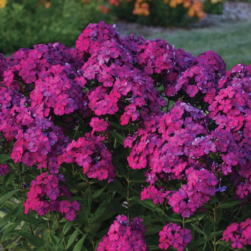 | Very dark magenta violet flower panicles are held above a full, bushy habit of bright green foliage. This is an improvement on the industry standard 'Nicky,' with darker stems and buds, bronzed leaves, more floriferous performance, and better resistance to powdery mildew. Tall Garden Phlox are a favorite in the garden but are often plagued by powdery mildew in hot, humid conditions. These varieties are selected especially for their improved resistance over typical Phlox paniculata varieties. With beautiful colors and incredible performance, these are varieties to plant and watch grow with little work required. These perennials are a favorite of gardeners worldwide and a staple of North American native gardens. Be sure to locate these plants in full sun for the best flowering performance and to help avoid powdery mildew concerns—a favorite of pollinators. |
