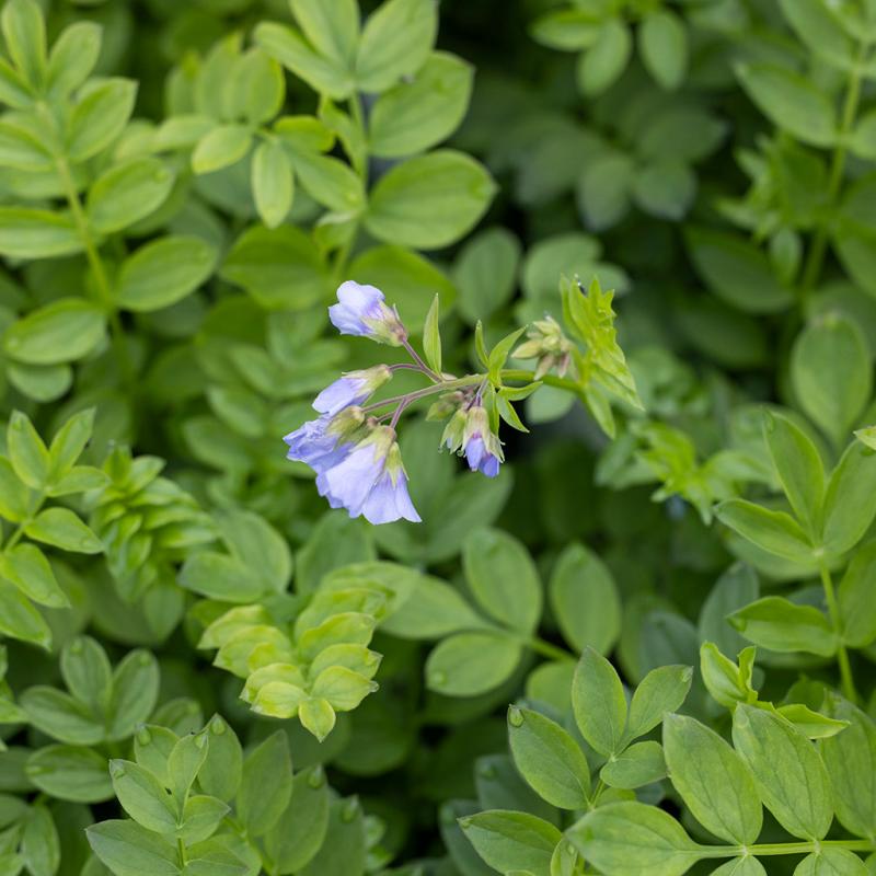 Description: With its clean, green foliage, this lovely Polemonium is the perfect accent for hostas. It forms a mound of green, fern-like foliage from spring into summer with deep purple highlights. The foliage grows about 1' tall and is topped by loose clusters of lightly fragrant blue flowers in late spring. This easy-to-grow perennial looks great in the middle to the front of the flower border. It easily mixes with most other garden plants. Though most Polemoniums prefer afternoon shade, 'Heaven Scent' seems to be able to take a bit more sun than the others as long as a good supply of moisture is available.