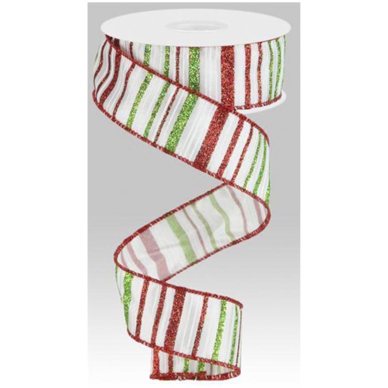 Plaid Theme Ribbon Glitter Stripe on Satin White Red Lime #9