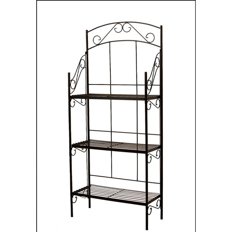 Three-tier, black Baker's Rack is made of powder-coated finish on heavy gauge wire to ensure durability. 13" x 30" x 68"H. Rack folds flat for easy storage.