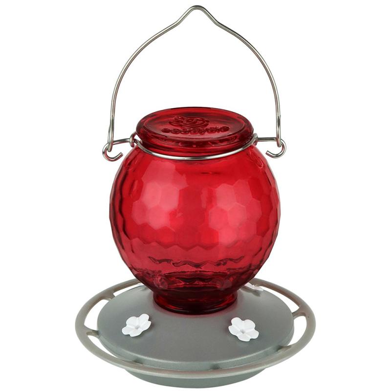 Description: Nature's Way Top-Fill Hummingbird Feeder utilizes a beautiful, thick hand-blown glass base and lid holding up to 18 oz. Features Easy Fill & Clean with a 3" wide opening and silicone gaskets for Leak Free fit. All glass, silicone and flower ports are dishwasher safe. This feeder comes with a decorative powder-coated perching ring and a lifetime warranty.