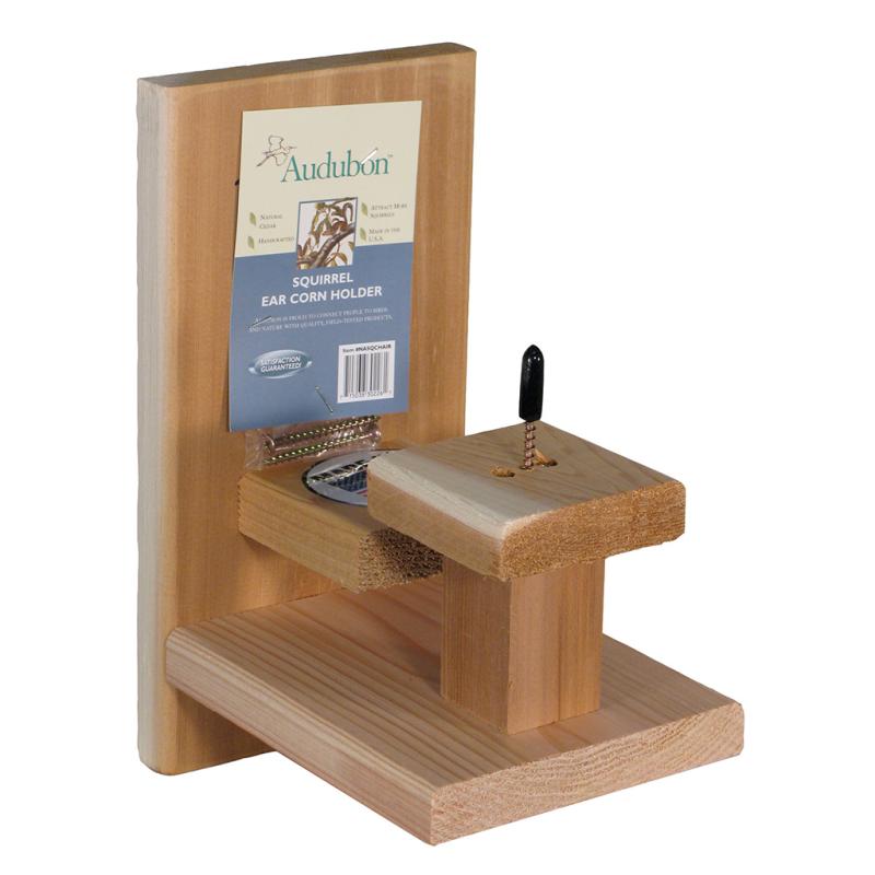 The Squirrel Ear of Corn Holder is great entertainment and ideal for distracting squirrels from your bird feeders. Easy to use and clean. Holds 1 ear of corn. 10" H x 7.25' W x 5.25" D. Made in the U.S.A.