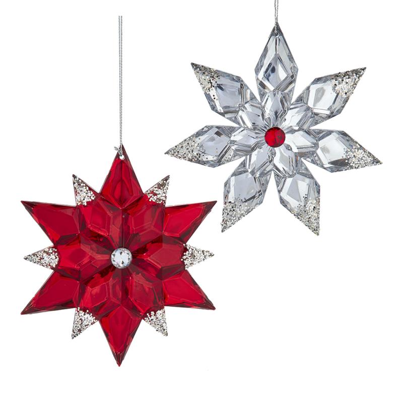 | Kurt Adler's Red & Silver Snowflake Ornaments are a classic and elegant addition to your holiday decor that captures the timeless beauty of snowflakes in two assorted designs. These ornaments are perfect for infusing your holiday decor with a sense of winter wonder, festive sophistication, and the delicate charm of falling snow. Each of these exquisite snowflake-shaped ornaments features a red and silver design with red and clear gemstones and silver glitter accents that evoke the enchanting allure of winter. Crafted with precision and attention to detail, these ornaments are made from high-quality materials that capture the essence of festive beauty, adding a touch of luxury to your holiday decor. Celebrate the magic of the holidays and the joy of festive celebrations with our Red & Silver Snowflake Ornaments. Let them be a symbol of the festive atmosphere and the classic beauty of red and silver during the holidays, and create cherished holiday memories with these versatile additions to your Christmas decorations. |