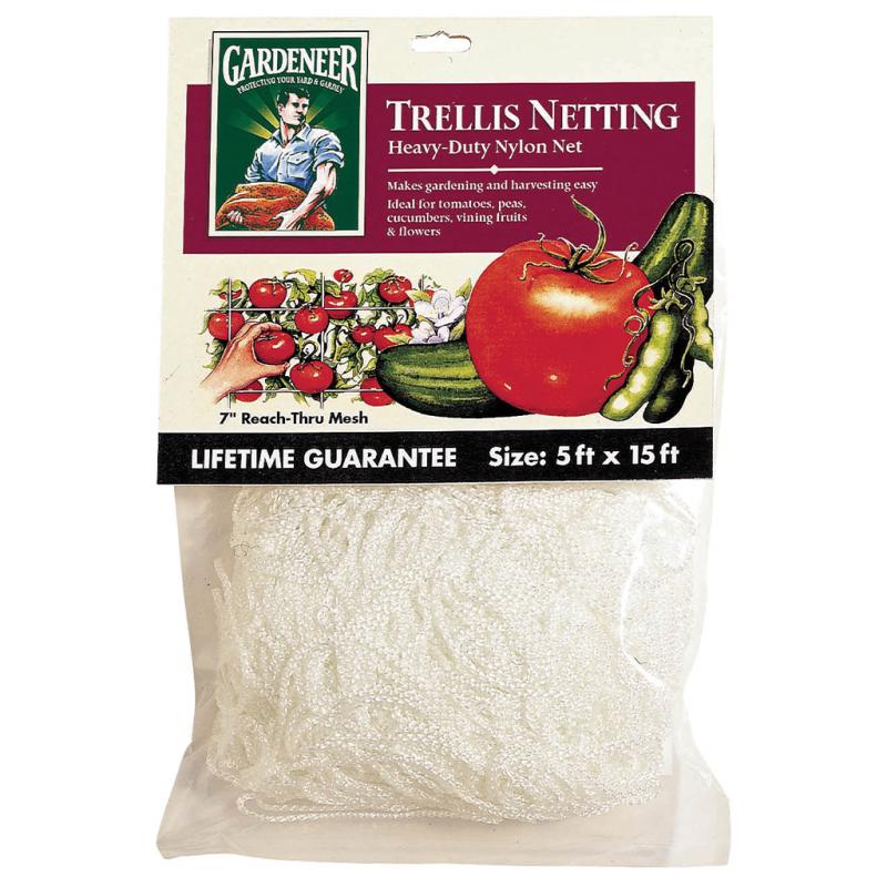 Heavy-duty, tangle-free nylon netting is ideal for growing tomatoes, peas, and vining crops. Harvesting is easy with the 7" reach-through mesh. Lifetime guarantee. Made in the U.S.A.