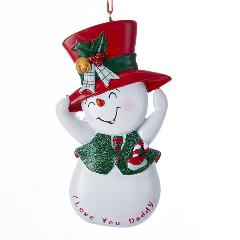 | This playful resin ornament features a jolly snowman dressed in a red festive hat and a green vest. A slogan at the bottom of the snowman reads, “I Love My Daddy.” With its bright colors and cheerful expression, it’s the perfect way for children to honor Dad on the Christmas tree and add a heartwarming touch to the holiday décor. |