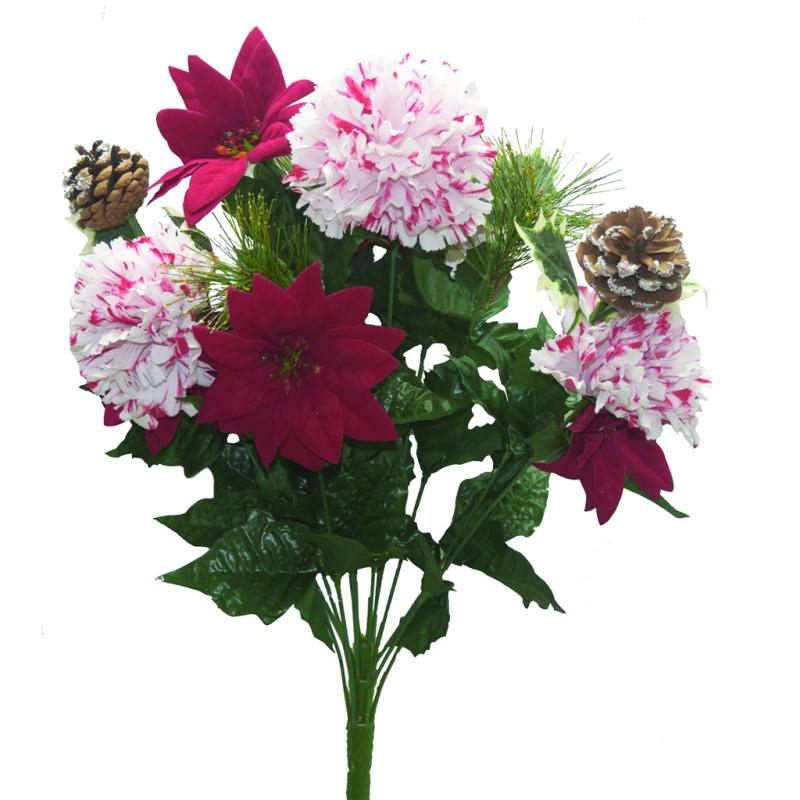 Silk Flowers Glitter Velvet Sheer Poinsettia Silver / White Regency International